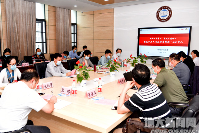 环境学院党委构建以政治建设为统领的高质量党建工作体系,加强党的全面领导,探索党建领院、以史铭院、学术立院、特色建院、人才强院、文化兴院、开放活院、依法治院的科学治院理念,提升组织力,实施党支部书记“党建带头人、学术带头人”培育工程,不断创新“一书二册三台账”和“五个一”制度,建立“六红”“六专”“六能”“六心”为要素的生态环保铁军人才培养体系和高质量思政工作体系。