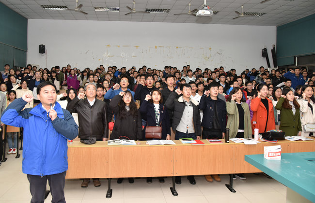 李素矿主持党课。他总结说,党课的精彩,引领人生的出彩。王焰新校长的党课与同学们分享了自己的学习体会、研读心得。党课内容引经据典,有理论有思想有实证,贯穿古今中外,是一堂生动、精彩、接地气的党课。体现了一校之长的政治家智慧与眼光、科学家的思维与严谨、教育家的希冀与鼓励,同时也是一名普通党员教师对同学们语重心长的谆谆教导。他强调,学习研读践行党的十九大精神,是环境师生当前和今后一个时期的重要政治任务。新时代在召唤青年,青年要不负新时代。同学们要真学真信真用,学懂弄通做实,要学出忠诚、学出自信、学出担当、学出责任,要学出创新创业的真本领。牢记学习使命,为实现中华民族伟大复兴的中国梦而努力学习,坚持用习近平新时代中国特色社会主义思想武装头脑,领航人生观、世界观、价值观,指导学习、工作和生活,做到价值取向与习近平同志为核心的党中央与祖国人民同心、学术方向与政治方向同向、学术卓越与思想卓越同行、学术魅力与人格魅力同在。
