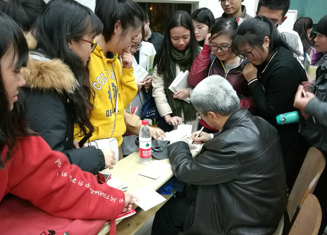 党课结束后,王焰新校长还继续与同学们进行交流,并应同学愿望在环境学院宣传名信片上书写勉励寄语。