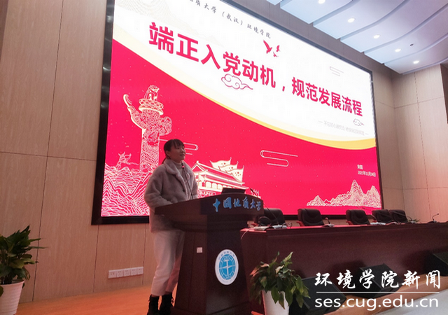 通讯员陈倩  编辑耿婧)2021年11月24日晚上,环境学院第七十一期入党积极分子培训班第二课在科教四楼108报告厅展开。环境学院党建辅导员宋霖以“端正入党动机,规范发展流程”为题讲授党课。