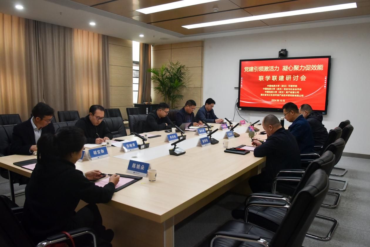 (通讯员陈姚朵 编辑耿婧)10月21日下午,由资产经营公司组织发起的校企合作产教融合联学联建研讨会在未来城校区环境学院308会议室召开。研讨会以“党建引领激活力凝心聚力促效能”为主题,参加研讨会的有我校校友与社会合作处处长陈华荣、环境学院党委书记姜明敏、院长史建波、资产经营公司党总支书记兼董事长孙劲松、总经理胡文勤、湖北省长江生态环保产业技术研究院院长(简称长江生环院)郑洪标、执行院长张峻清以及各单位相关部门负责人。会议由孙劲松主持。