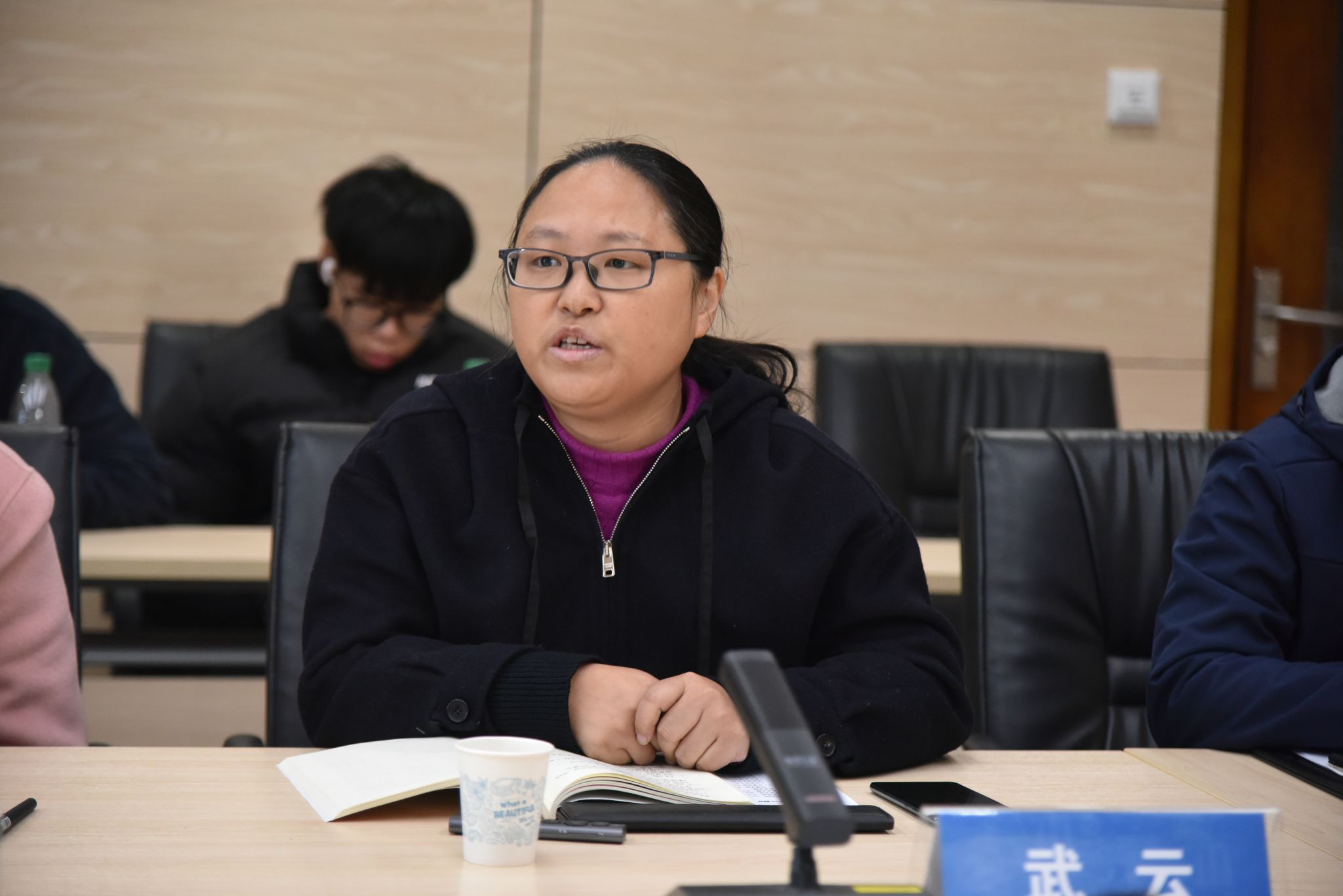 武云、张萍萍、崔海波分别介绍各自党支部的基本情况、特色做法和党建工作成效。