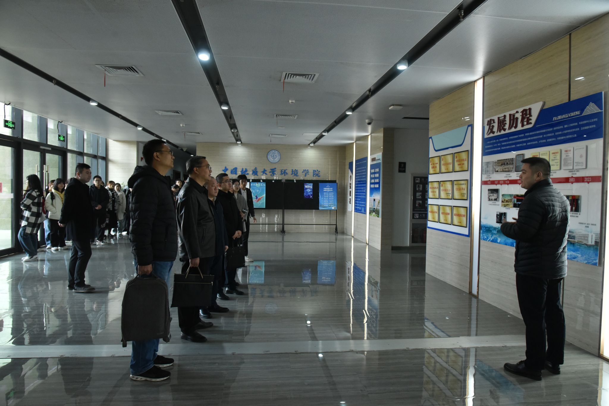 会前,与会人员集体参观环境学院党建“双创”工作成果展和学院文化墙。