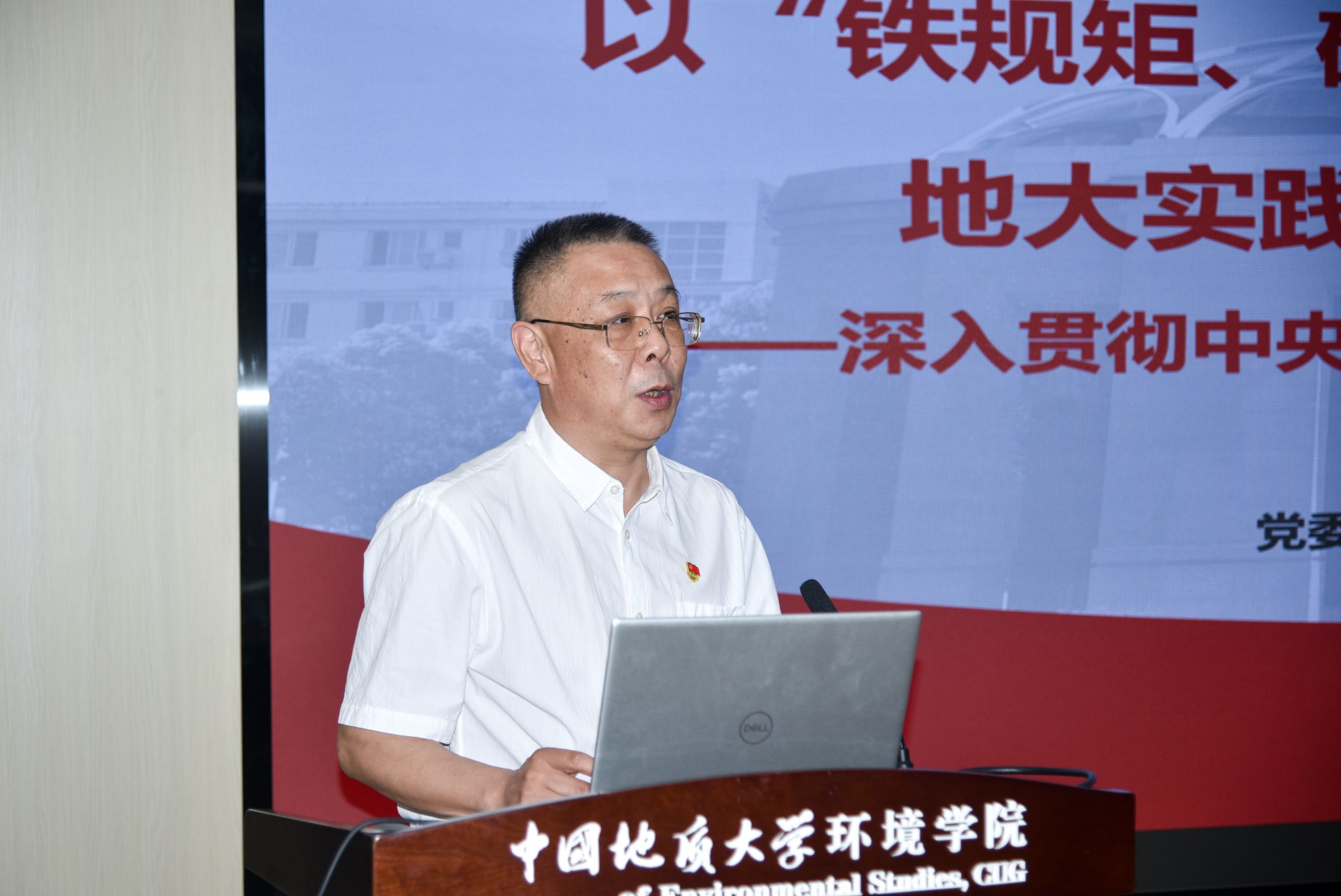 (摄影张学海 通讯员/编辑王孟雪)2025年5月16日,校党委副书记、纪委书记唐忠阳为环境学院和计算机学院师生讲授深入贯彻中央八项规定精神学习教育专题党课,主题是“以铁规矩、硬杠杠为教育强国建设地大实践提供有力作风保障”。环境学院和计算机学院二三级领导班子成员,学生党支部书记参加学习。