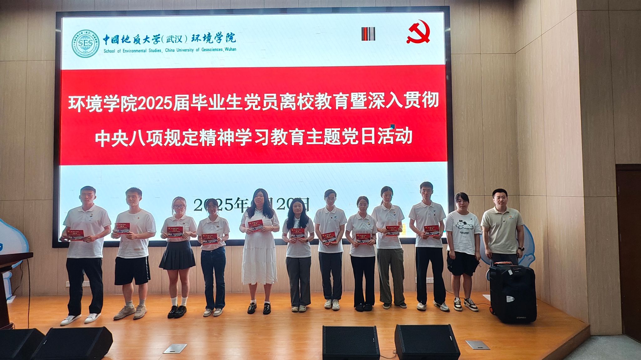 (通讯员吴冰、陈俊男 摄影庞熠 编辑王孟雪)6月20日上午,环境学院2025届毕业生党员离校教育暨深入贯彻中央八项规定精神学习教育主题党日活动在学院108报告厅举行。校党委组织部正处级专职组织员蒋怀柳,环境学院党委书记姜明敏,学院专职组织员张学海,辅导员陈俊男、孟庆达、赵恩民以及全体本研毕业生党员共同参加活动。陈俊男主持本次活动。
