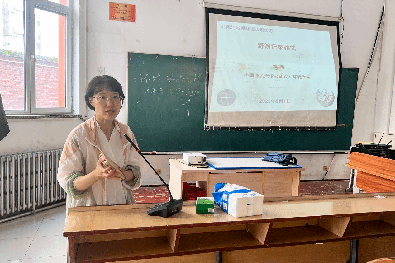 随后,环境学院实习动员会在教学楼阶梯教室继续进行。实习队队长童蕾向同学们介绍各班带队教师,并着重强调实习期间教学、安全等各项注意事项,对圆满完成实习任务提出明确要求。同时,对野外实习中使用的野簿记录格式和信手剖面图的绘制方法进行了详细讲解,为即将开始的野外学习与实践奠定了坚实的基础。