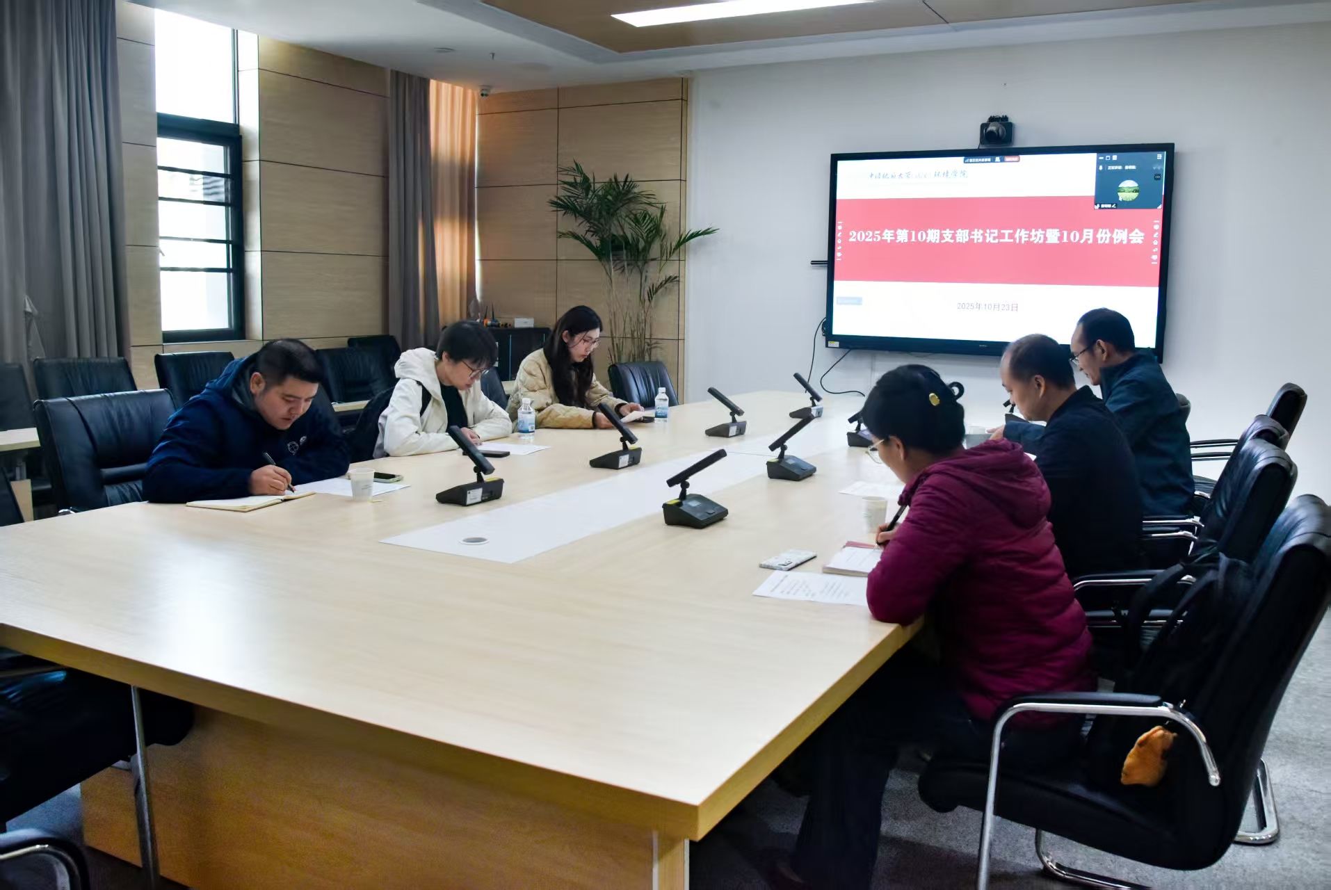 (通讯员/摄影王孟雪 编辑申墁烨)10月23日中午,环境学院2025年第10期支部书记工作坊暨10月份例会在科教楼四308室召开,会议采取线上线下同步进行。学院党委书记姜明敏,党委副书记丁继国,全体教工党支部书记、组织秘书和党建辅导员等参加会议。姜明敏主持会议。