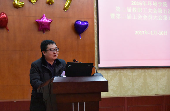 2017年1月10日下午在教职工活动中心综合厅,环境学院召开第二届教职工大会第五次会议暨第二届工会会员大会第五次会议。会议的主题是:科学规划“十三五”,建设“双一流”。学校工会副主席高复阳,环境学院工会委员、各系室工会组长,学院党政领导班子成员、全体教职工和工会会员参加了大会。