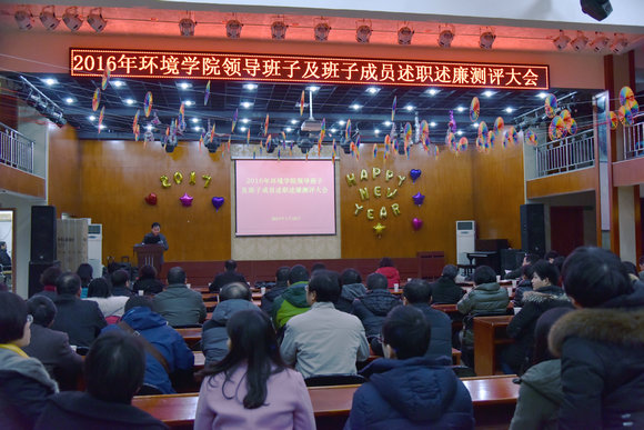 2017年1月10日下午,在学校教职工活动中心综合厅,环境学院党委召开2016年学院领导班子及班子成员述职述廉测评大会。学校党委组织部陈汉英老师、环境学院领导班子成员、全体教职工参加了述职述廉测评大会。