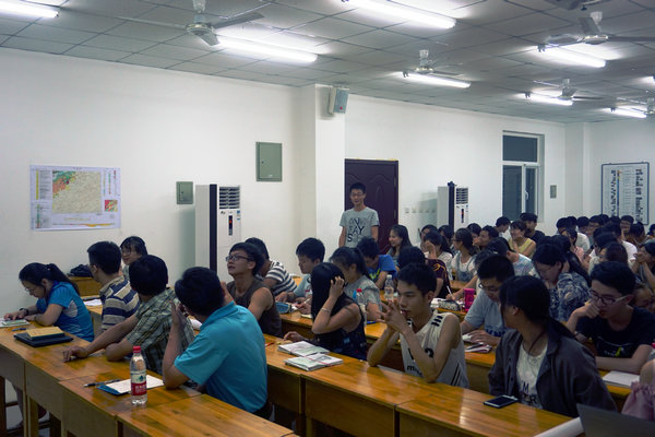 (通讯员孟国强 张多 编辑张学海)2017年8月14日晚,在中国地质大学周口店实习站,环境学院师生观看了电视专题片《将改革进行到底》并讨论交流学习心得。环境学院党委书记李素矿,周口店实习带队教师高旭波、邢新丽、罗明明,辅导员孟国强以及100余名学生参加。
