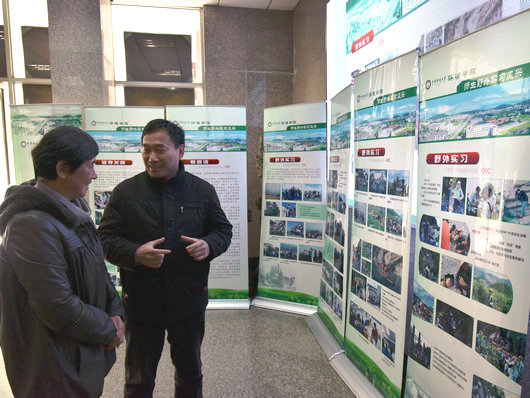 在环境学院李素矿书记的陪同下,朱勤文副书记一行参观了环境学院2016师生实习风采展。朱勤文副书记观看了师生实习风采展中的党建活动板块,充分肯定了环境学院党委“党员在哪里,党的建设就要延伸到哪里;学生在哪里,思想政治教育就要走心到哪里。”的工作理念以及野外实践实习中开展党建工作的“小郎中”“小处方”等创新做法。 (张学海/文 /图)