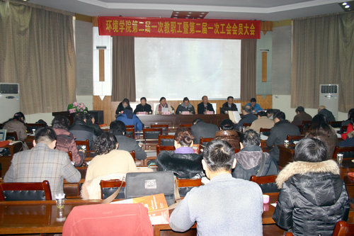 校工会常务副主席高芸宣读《中国地质大学关于同意环境学院分工会委员会召开第二届教代会暨工代会的请示的批复》,院党委书记刘先国致开幕词,丁振国主席和 万清祥副校长分别讲话;院长马腾作学院工作报告、院工会主席万军伟作工会工作报告;副院长祁士华作环境学院“十二五”发展规划及贯彻落实方案解读以及提升 研究生培养质量工作报告、副院长王红梅作科研经费管理报告、副院长郭会荣作本科教育教学工作报告;进行了环境学院工会委员的选举;会议还进行了分组讨论, 讨论院长马腾的工作报告、学院工会主席万军伟的工会工作报告;还讨论了《环境学院关于加强本科教学过程管理的规定》、《环境学院人才引进及管理办法》、 《环境学院新校区建设规划》等11个制度和文件。