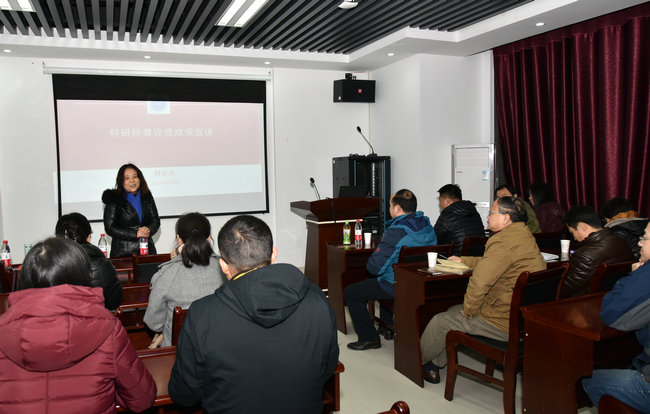 (通讯员左麦枝 编辑张学海)2017年12月14日下在午丹桂苑105室,环境学院召开全院教职工大会,邀请职能部门领导就科研经费管理政策进行宣讲。财务处处长张玮、科研管理科科长鄢琼伟、会计科科长刘锐军以及科发院重大项目办主任肖平一行来院宣讲,环境学院全体教职工参加。环境学院副院长王红梅主持宣讲会。