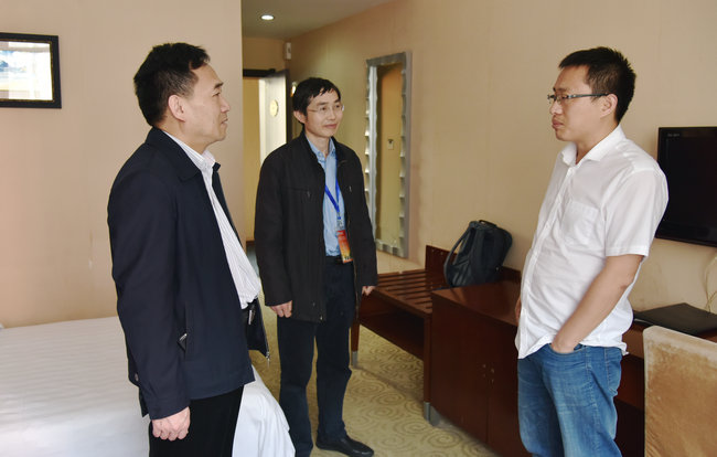 (环境学院张学海)2018年3月25日下午,环境学院党委书记李素矿来到学校迎宾楼和惠宾楼宿舍,看望参加2018国际青年学者地大论坛-环境学院分论坛的参会青年学者代表。人事处副处长周刚一同看望。