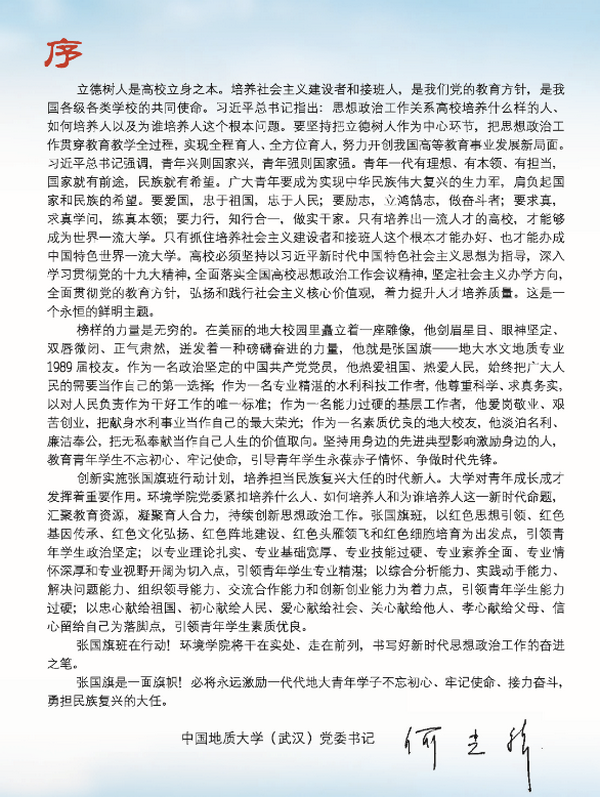 (通讯员:李平 编辑:张学海)环境学院党委创新实施“张国旗班”行动计划,校党委书记何光彩为该计划作序。