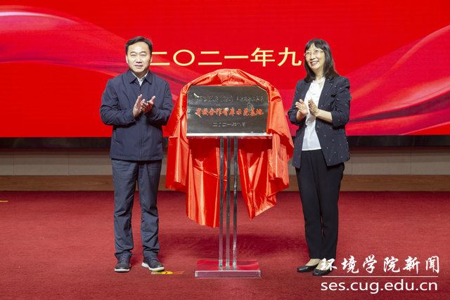 学院党委书记李素矿与晋城市市委常委、组织部长辛艾艾共同为省校合作智库示范基地——“中国地质大学(武汉)晋城市水务局智库合作基地”揭牌。