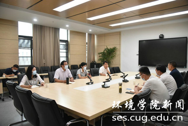 李素矿书记感谢学校长期以来对学院工作的大力支持,并就学院疫情防控、意识形态、人才培养等各方面的工作情况进行交流。柴波副院长详细介绍本科生野外实习、课程体系优化、教材建设的详细情况。王海锋副书记汇报环境学院招生就业的详细情况。