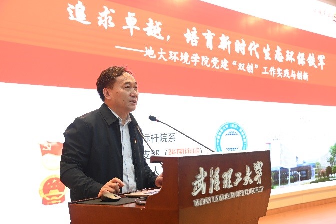 交流环节,李素矿强调,在高等院校内,学院是学校办学治校的关键中间环节,学院基层党组织是高校党委领导下的校长负责制治理体系中的重要一公里,也是高校全面从严治党的最后一公里。他从环境学院发展概况、双创举措、工作思考三个方面介绍,着重从谋划“红专能优”党建育人模式、实施“张国旗班”行动计划、涵养“1+6”资政育人氛围、建设“美丽中国”4+N课程思政、打造水-土-气-生-环跨学科育人范式等五个方面交流了学院党建“双创”工作的经验做法和成果成效。