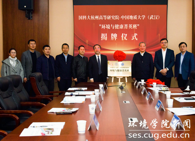 (通讯员付苑婷 编辑/摄影严丽莎)3月23日上午,国科大杭州高等研究院-中国地质大学(武汉)“环境与健康菁英班”揭牌仪式暨开班第一课在我校南望山校区教学综合楼举行。国科大杭州高等研究院常务副院长郑崇辉,中国科学院院士、环境学院院长江桂斌,执行院长郑明辉,中国科学院院士、我校校长王焰新,本科生院常务副院长周建伟,环境学院院长史建波等出席揭牌仪式。周建伟主持仪式。