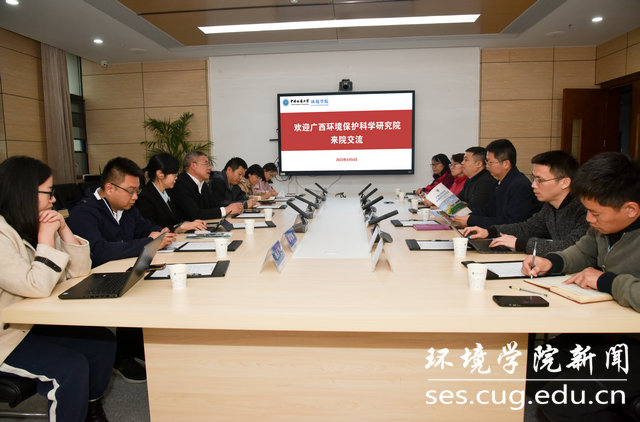 (通讯员李俊霞 编辑/摄影严丽莎)4月6日下午,广西环境保护科学研究院来环境学院交流座谈。广西环境保护科学研究院院长邵克权、副院长方晓航、总工程师陈婷、总工室主任林华、土壤中心执行主任罗栋源、土壤中心高级工程师高何凤、土壤中心博士杜军艳,环境学院副院长谢先军、生物地质与环境地质国家重点实验室副主任袁松虎、水资源与水文地质系主任罗明明、环境科学与工程系副主任李俊霞、实验教学中心副主任补建伟、环境科学与工程系苏春利老师等参加座谈会。谢先军主持座谈会。