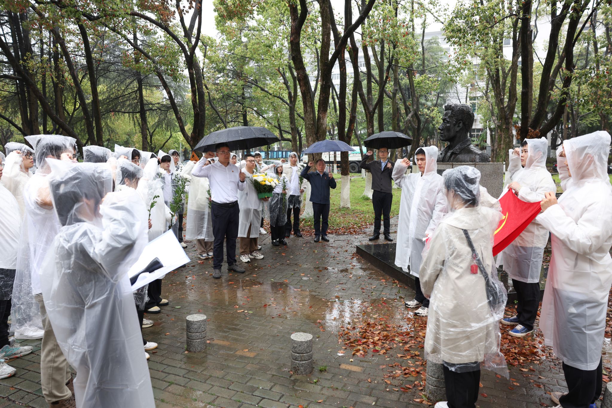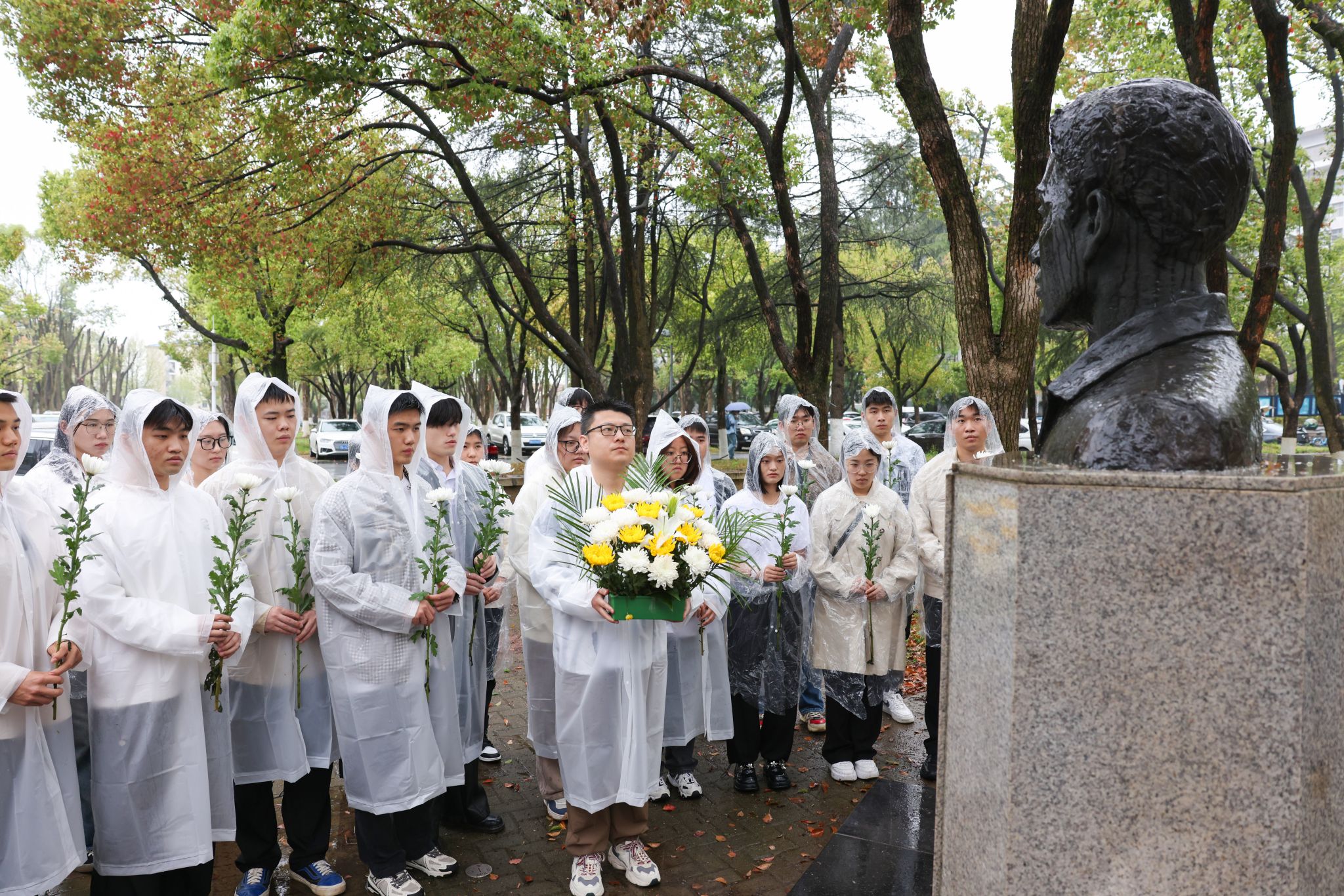 张云飞与全体师生向张国旗雕像献花并默哀一分钟。