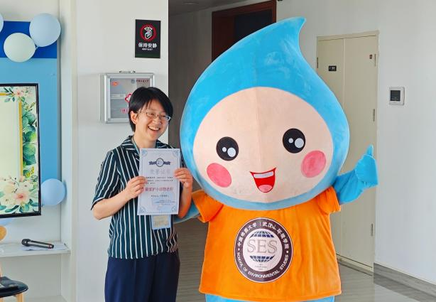 茶话会期间,生物系2003级毕业生钟淑梅校友发表回校感想,勉励同学们继续努力拼搏,并接受了毕业生代表赠送的生物系教师科普作品《地大花鸟集》。