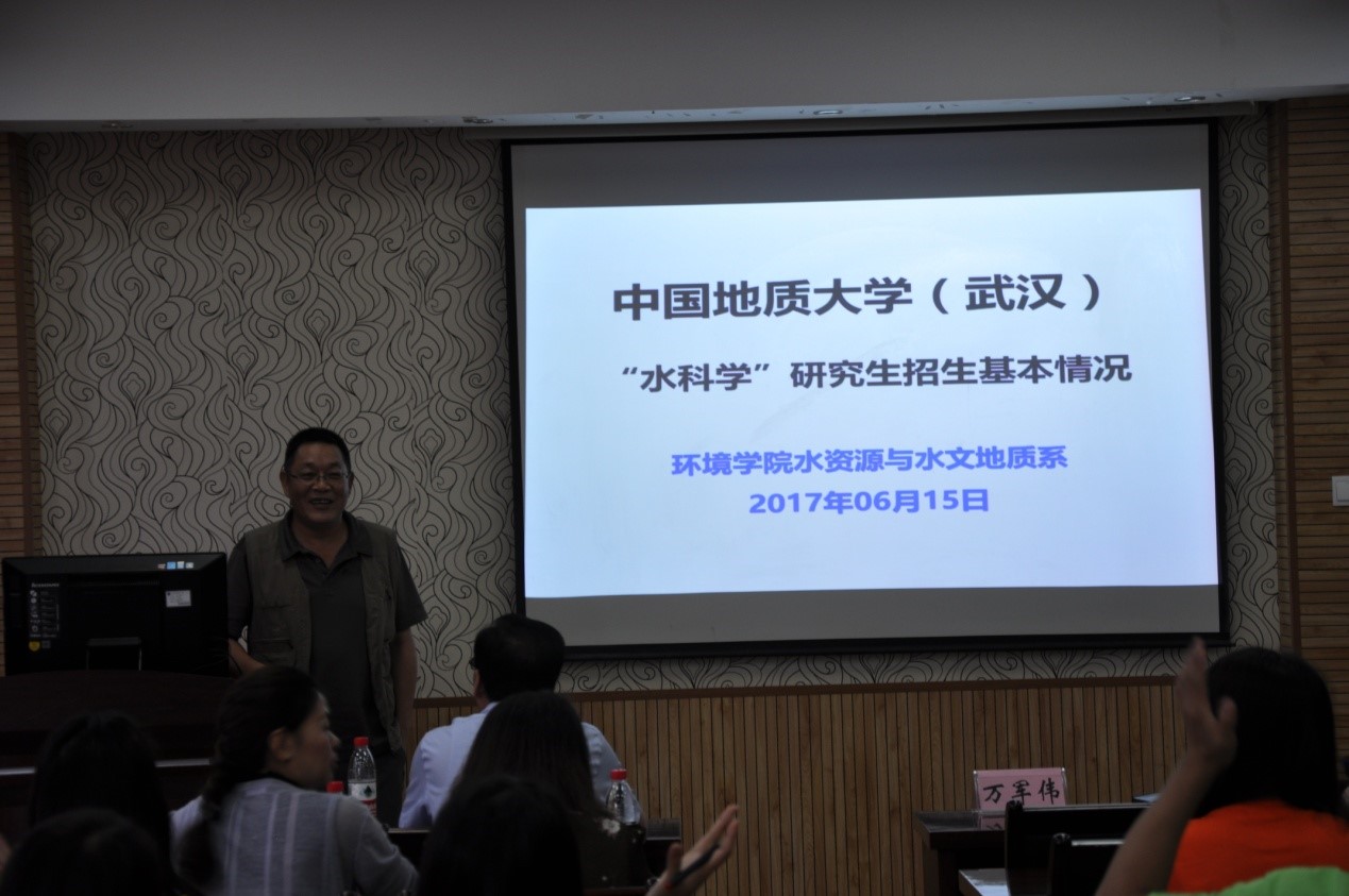 (通讯员余露)6月14-15日,环境学院顺利举办了2017年研究生招生校园开放日活动。2017年6月15日上午10点,环境学院研究生校园开放日咨询会在文华楼205召开。研究生院招生科科长王蕾,环境学院院长马腾、水资源与水文地质系主任万军伟、研究生秘书刘凤莲、研究生辅导员王碧,以及来自各大高校本科生代表等参加会议。研究生工作部部长刘世勇也到场巡视并参加了开幕式。会议由王碧主持。