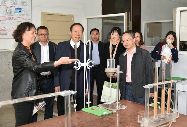考查专家组考察环境学院教学实验中心,罗朝晖介绍水化学实验室情况