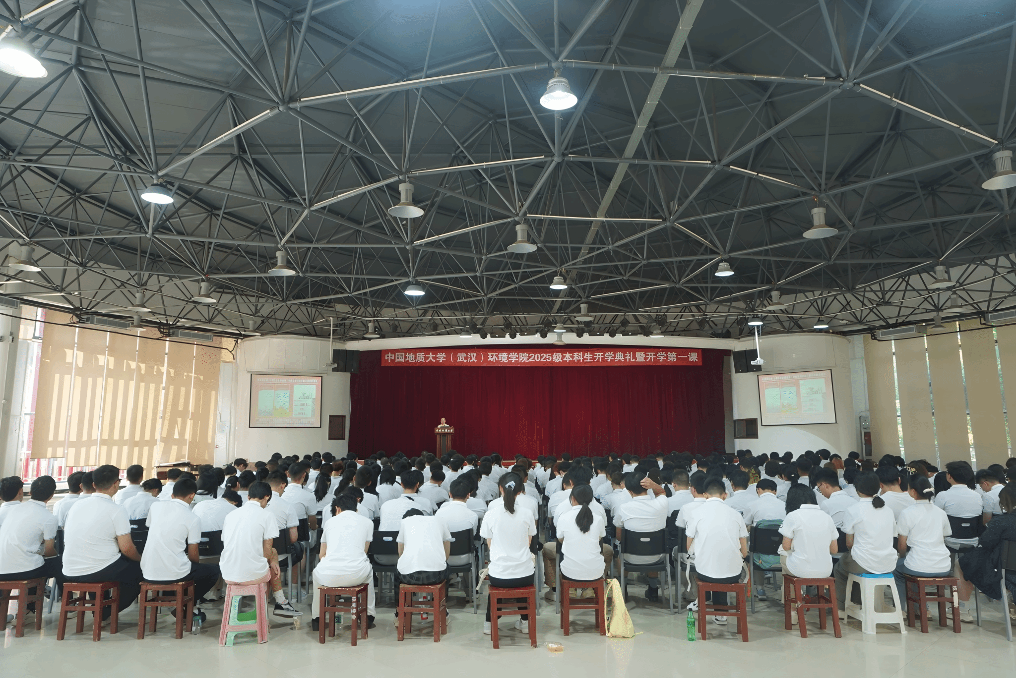 组织全体新生集中观看“纪念中国人民抗日战争暨世界反法西斯战争胜利80周年大会”直播盛况,借助历史回顾与现实映照,深化爱国主义教育。集中参加由校党委书记刘杰主讲的开学第一课《做新时代挺膺担当地大人》,立足新时代青年成长需求,结合学校学院生动典型案例开展互动研讨,充分激发青年学子的责任担当意识。学院党委书记姜明敏为全体新生讲授学院开学第一课《铭记与奋斗,争做红专能优的新时代生态环保铁军》,通过回顾历史、展望未来,强化学生的使命意识与家国情怀。