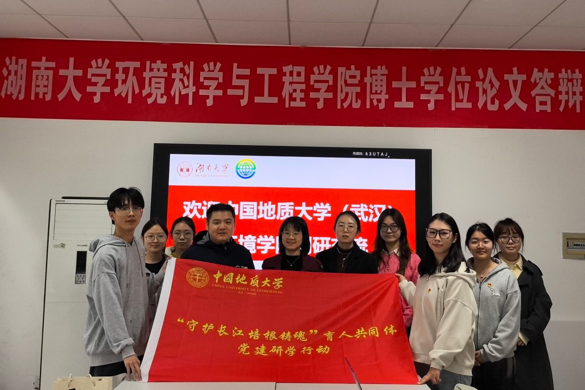 通讯员赵佳、王丫旗 摄影环境工程专业大学生党支部 编辑申墁烨)为深入学习贯彻习近平生态文明思想,推动“守护长江,培根铸魂”育人共同体联合行动,10月31日,我院环境工程专业大学生党支部前往湖南大学环境科学与工程学院、湖南省地质灾害调查监测所开展党建研学活动。本次活动通过“走出去”研学与“引进来”联建相结合,推动建立“薪火驿站”党建研学点,在互学互鉴中夯实工作基础,在实践探索中凝聚育人合力。我院辅导员陈俊男,支部李常荣、赵佳、王丫旗、张运禹、吴雪晴参与本次活动。