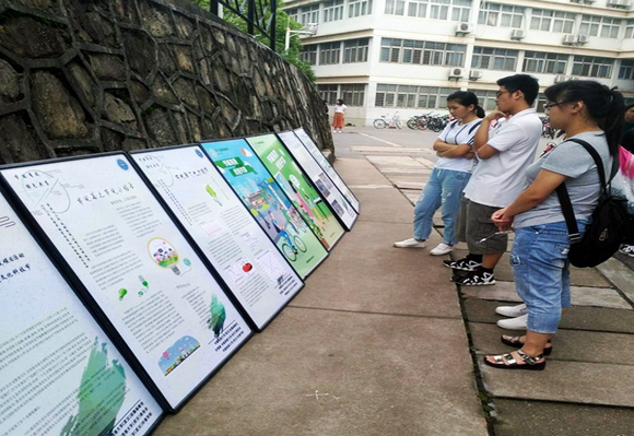 精心制作的展板摆放在北区隧道口、西区体育馆外和东区校园橱窗对面,面向全校师生普及生态文明、绿色低碳发展理念和知识,吸引了许多学子驻足观看。我院团委学生会也充分利用微信、QQ公众号等新媒体,进一步加大了宣传力度,让“绿色共享”的理念更加深入人心。