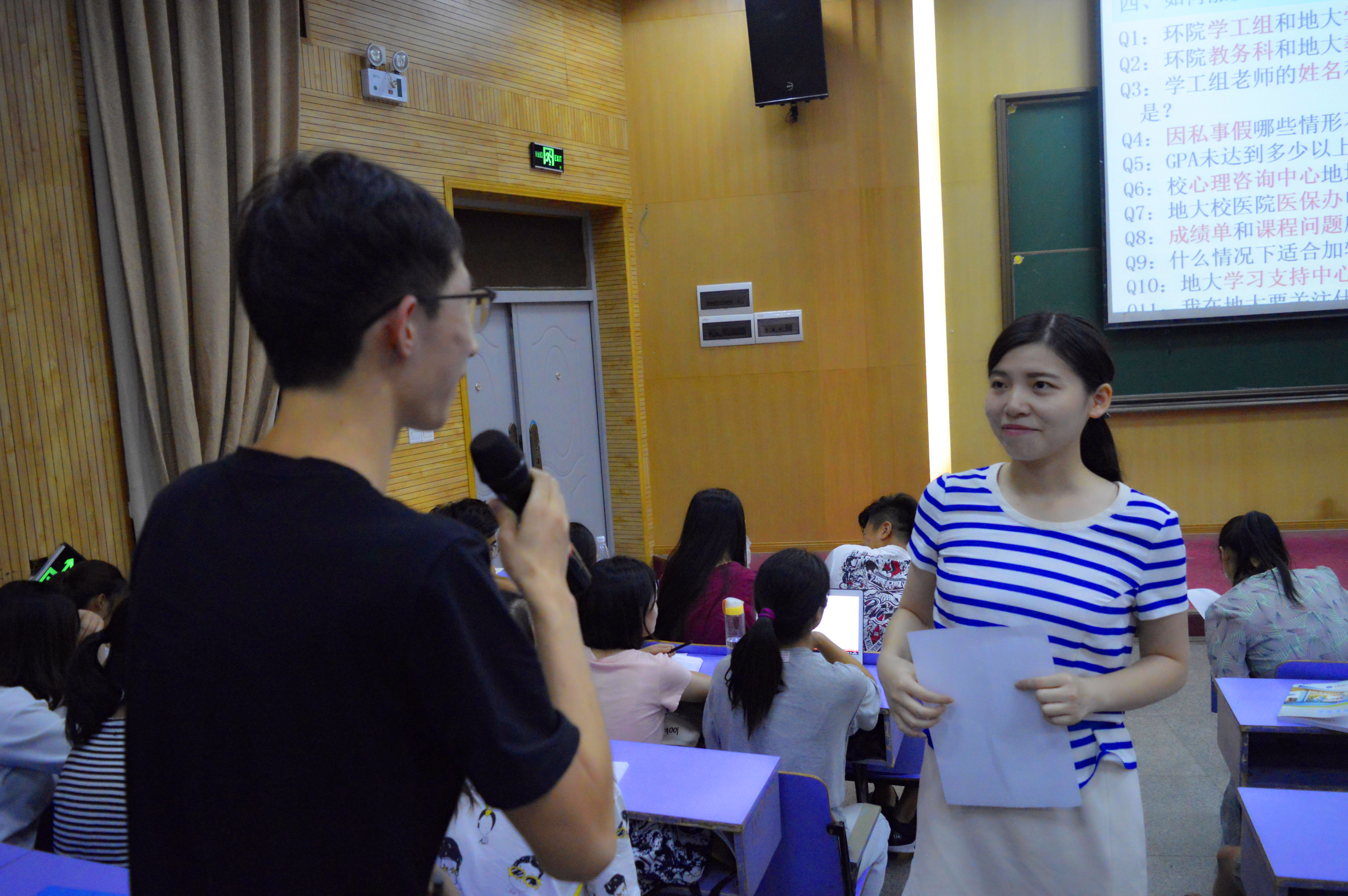 已带完2017届本科毕业生的她,基于2017届学生成长过程中的常见困扰,用幽默风趣的语言带领学生们“用地质锤敲碎南望山下十大谎言”,再度强调了勤奋学习、职业生涯规划以及基础科研对于大三年级学生的重要性,并推荐了地大云就业等5个微信平台和环境学院官网(学术公告栏目)等6个网站资源,鼓励学生修读专业相关在线慕课,多聆听绿色地球论坛,多参与课余科研项目。