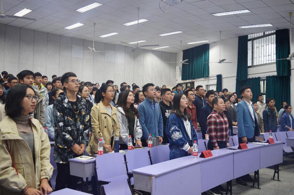 10月21日上午,环境学院“青年大学习·团干讲团课”活动暨2018年学生干部培训大会在教三208拉开帷幕。学院党委副书记姜明敏老师、团委书记王碧老师、兼职辅导员汪静老师和全体学生干部参加大会。大会从全体奏唱团歌开始,嘹亮的歌声不仅展现了青年的活力与朝气,更展现出了环院学生积极向上的精神面貌。