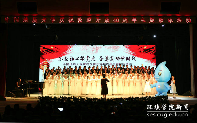 (通讯员:高婷 编辑:王碧 刘芸)2018年12月6日下午,中国地质大学(武汉)“不忘初心跟党走 奋勇建功新时代”庆祝改革开放40周年主题歌咏活动在弘毅堂举行,歌咏活动旨在深入学习贯彻习近平新时代中国特色社会主义思想,以歌声歌颂伟大祖国、庆祝改革开放40周年。全校共20个单位参加比赛。我院“红山雨”师生合唱团参加了合唱比赛。