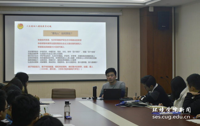 (通讯员:汪薇 编辑:刘芸)为增强团员青年的政治素养、提升思想境界、坚定目标信念,进一步学习贯彻习近平新时代中国特色社会主义思想,2018年12月9日下午,环境学院第九期“青马工程”提高班“学榜样,争先进”主题团日活动在丝绸之路学院212会议室举行。学院党委副书记姜明敏,团委书记王碧及第九期“青马工程”提高班全体学员参加了此次活动。