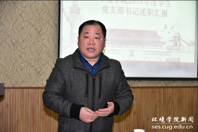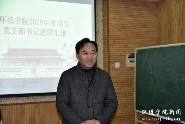 (通讯员:孟国强 编辑:刘芸)2019年1月7日下午,环境学院学生党支部书记述职汇报在文华楼205举行。环境学院党委书记李素矿、党委副书记姜明敏、辅导员孟国强参加。