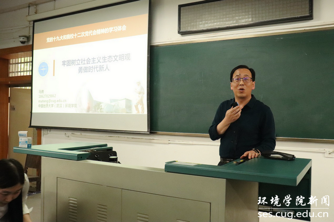 (通讯员 王倩 编辑 杨馨梦)2019年4月25日下午,环境学院院长马腾老师为环境学院第十九期入党积极分子培训班学员授课,本次党课由学工组李平老师主持,主题为“牢固树立社会主义生态文明观,勇做时代新人”