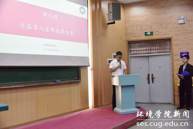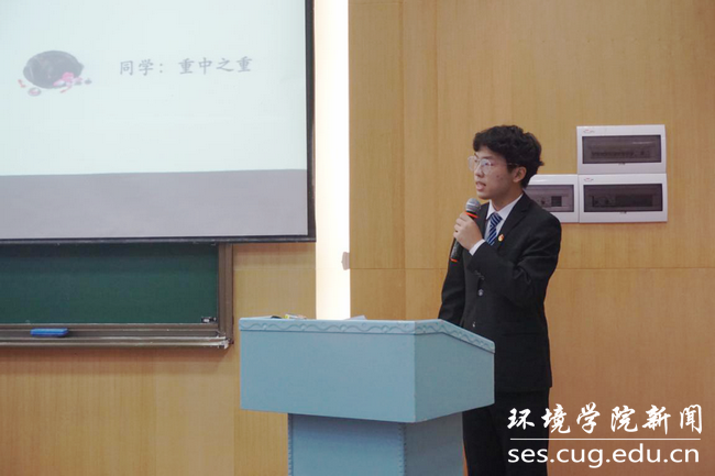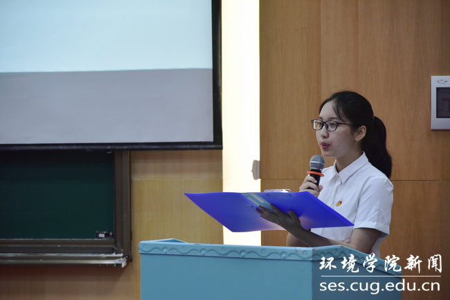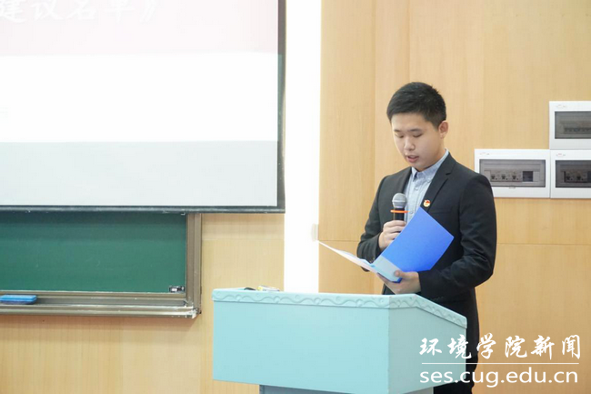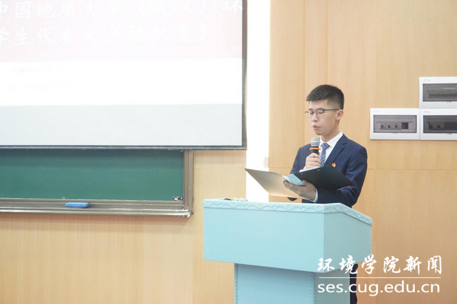 校学生会副主席陈柳源宣读《关于同意召开中国地质大学(武汉)环境学院第五次学生代表大会的批复》。