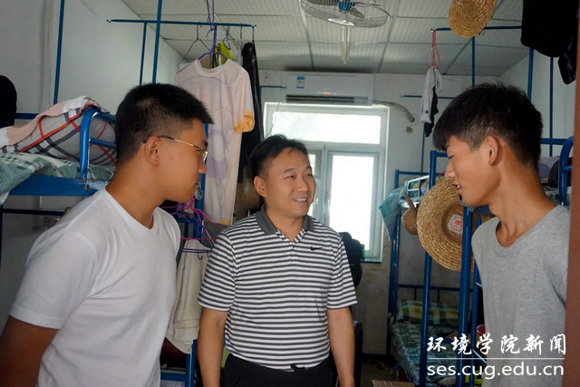 14日下午,李素矿一行到达周口店实习站并看望在站师生。在学生宿舍,李素矿一行与同学们亲切交谈,详细地询问了同学们的实习、生活和学习情况,鼓励大家珍惜实习,认真学习,夯实基础,练就过硬的专业本领和扎实的思想作风。随后,李素矿一行前往教师宿舍看望带队教师,与带队教师亲切交谈,并进一步了解学生的实习情况,和带队教师一起检查学生的野簿,了解中加班同学的实习状态。