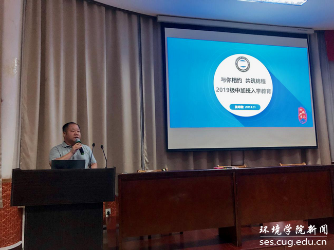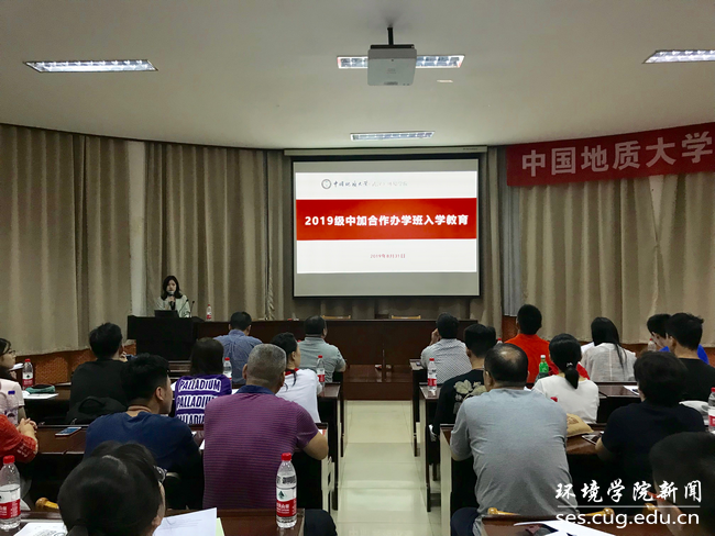 (通讯员、编辑 耿婧)2019年8月31日晚,中国地质大学(武汉)与加拿大滑铁卢大学“地下水科学与工程”专业中外合作办学项目2019级新生入学教育在南望山校区东苑会议室召开。环境学院副院长柴波、院党委副书记姜明敏、045191班主任文章、045192班主任曾斌、中加项目办严冰、教学秘书付苑婷、学工秘书耿婧及2019级中加合作班56名新生和家长共同参加此次会议。