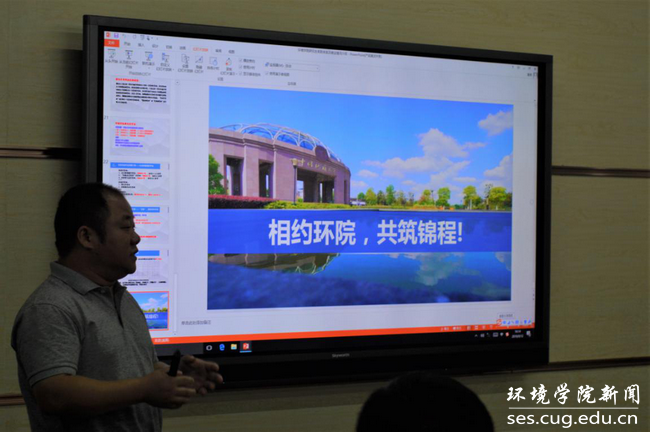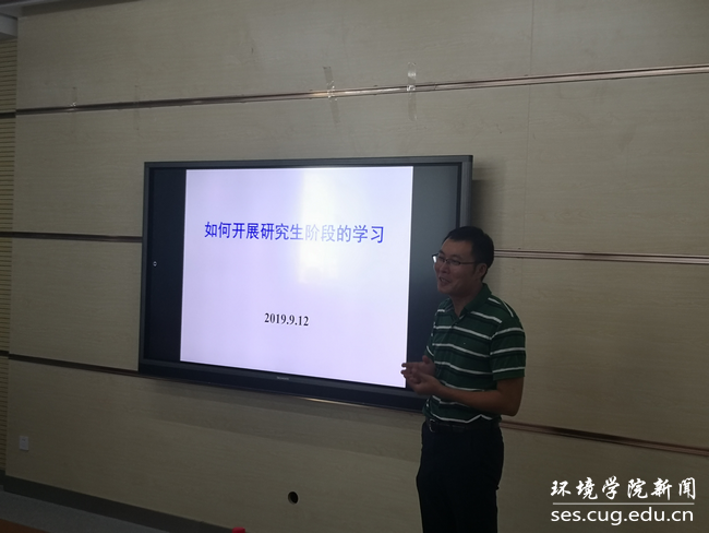 会议开始,柴波代表学院对到会同学表示欢迎,他向与会同学介绍了学院基本情况,并从“尽快完成角色的转变”“树立一个人生目标”“做两条腿走路的研究生”“假如你在环境学院继续学习”四个方面给同学们讲述了如何开展研究生阶段的学习。