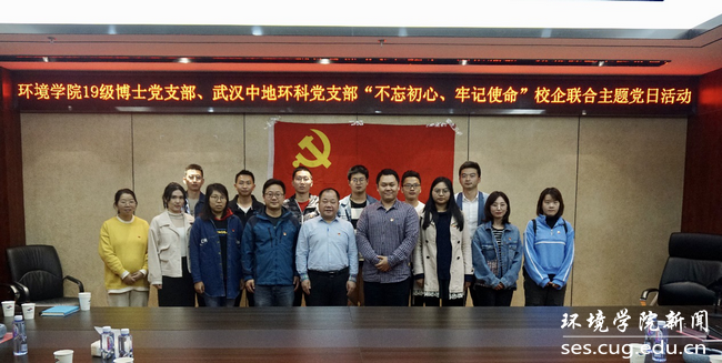 (通讯员王碧、韩鹏 摄影韩鹏 编辑 耿婧)10月25日下午,我院2019级博士党支部党员代表走进武汉中地环科集团有限公司,与中地环科水工环科技咨询有限责任公司党支部共同开展“不忘初心、牢记使命”校企联合主题党日活动。学院党委副书记姜明敏,优秀校友、武汉中地环科集团有限公司总经理金晓文参加活动。