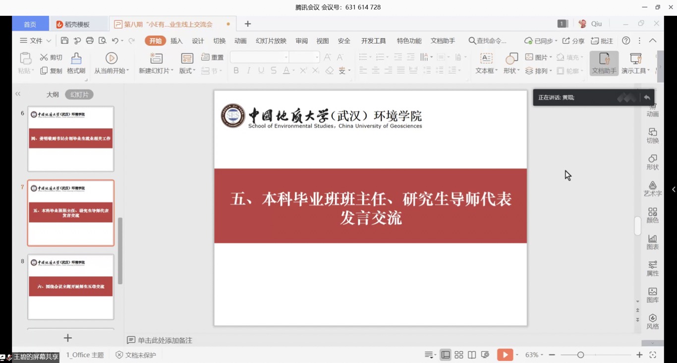 毕业年级辅导员王碧主持交流会。