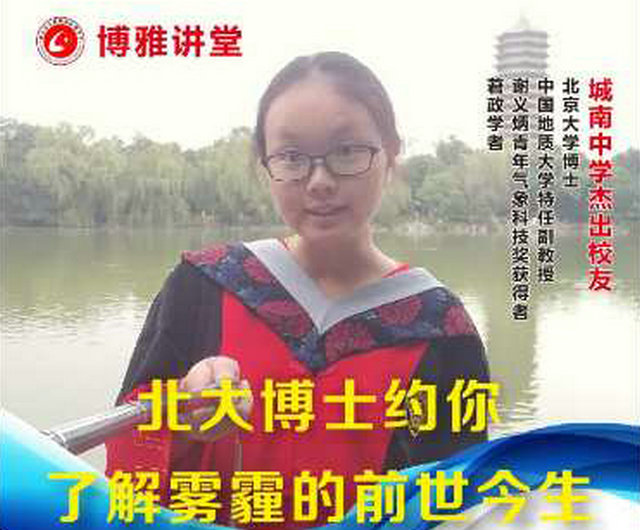 注:燕莹莹,生于1990年,初中、高中均就读于城南中学,是北京大学大气物理与大气环境学博士、2016年最年轻的谢义炳青年气象科技奖获得者、德国马普化学所交流学者、莙政学者、中国地质大学(武汉)环境学院大气科学系最年轻的副教授。