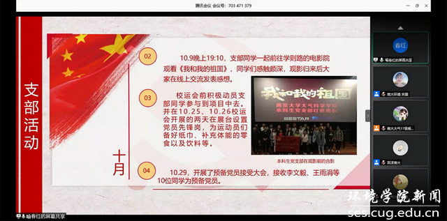 通过这次云共建活动,中国地质大学(武汉)环境学院生物大气专业大学生党支部和南京大学大气科学学院本科生党支部建立了深厚的友谊,未来,两个学院将继续加强交流合作,携手共进,不断推动学院的党建发展、大气学科的建设。