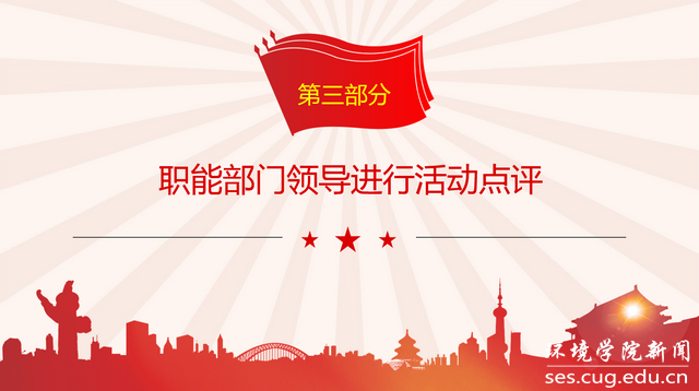 党委学工部副部长蒋怀柳老师进行活动点评。首先,她对各党支部开展的支部建设工作给予肯定。随后,她就各支部的汇报情况,提出四个“如何”的思考:第一,学生党支部书记以及学生党员如何在党和国家、学校和学院的改革发展当中,发挥更大更好的作用。党员同志们要在发展的大环境中找到自己的位置,这个位置既是一个作用,也是一个角色,也是一种使命担当。希望每一个青年党员,尤其是党员的骨干,能够把自己置身于历史当中去思考问题。今年是我们决胜全面小康社会决胜脱贫攻坚的收官之年,也是实现两个一百年奋斗目标的历史交汇之年,大家都应该在这种位置当中去深入的思考;第二,如何在影响同学同辈当中发挥更大更好的作用。各党员同志和党支部要发挥好先锋模范作用和战斗堡垒作用,起到示范引领的作用;第三,如何把党和国家、学校、学院提出的每一个要求,每一个希望,转化成一件一件具体的行动。第四,如何把实践当中的希望和梦想转化为实实在在的收获和成果。她就这些问题,结合高校基层党支部建设要求,学校党建思政建设要求,希望各党支部围绕“七个有力”、“学习之路”宣讲品牌以及实践调研的要求,真正的画出党支部建设的设计图、施工图和效果图,将学思践悟的要求落实落地,将党建育人实效辐射到每一名群众。