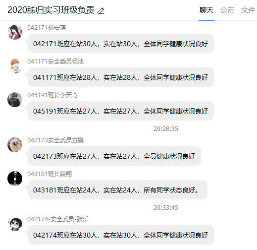 根据湖北省及学校疫情防控规定,为保证参加实习学生的身体健康,学院严格遵守疫情防控要求,细化在站疫情防控纪律,要求全体同学在公共场所戴口罩,每天早午晚三次报体温,在站实行封闭式管理,无特殊情况不得擅自离站。为保障饮食卫生安全,原则上不允许学生点外卖。同时,每天出野外时必须戴安全帽,穿荧光背心,带安全牌,严肃强调学生野外出行安全。在各班级干部得全力协助下,目前每个同学都能自觉遵守疫情防控纪律,疫情防控工作落实到位。