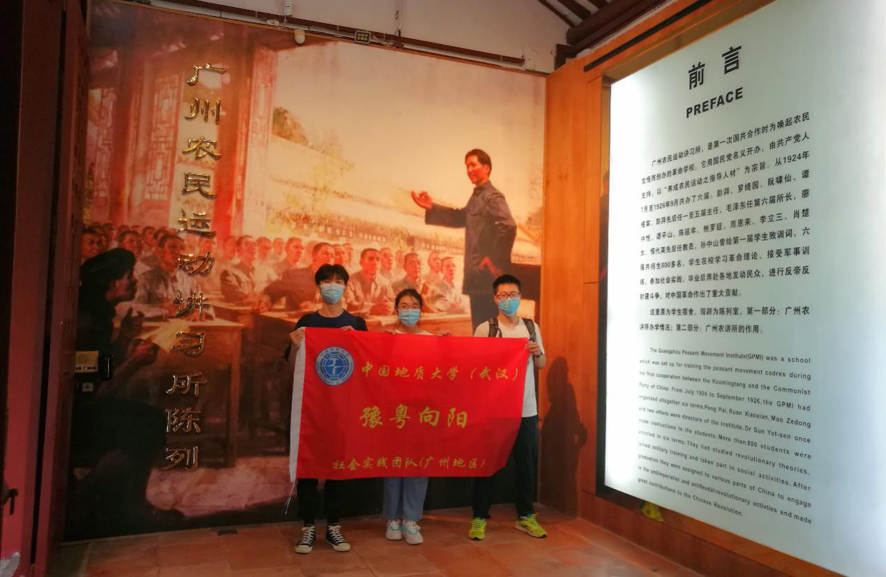 (通讯员谭昕煜 编辑耿婧)为坚持学习贯彻习近平新时代中国特色社会主义思想,在历史学习中充分了解历史事实,理清历史脉络。2020年8月5日上午,环境学院“豫粤向阳”社会实践团的郭玥、刘宇杰、谭昕煜三名同学赴家乡广州市“毛泽东同志主办农民运动讲习所旧址纪念馆”(简称农讲所)开展线下“四史”学习实践活动。