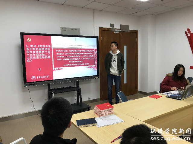 (通讯员许向南、柳璨、宋霖 摄影许向南、柳璨 编辑耿婧)2020年11月27日下午,环境学院学生党支部联合主题党日分别在环境学院党员之家和腾讯会议,线下和线上同步召开。辅导员宋霖老师及各支部学生党员通过腾讯会议线上参加主题党日,各本科生党支部书记、研究生党支部书记,在党员之家参加主题党日。本次主题党日由2018级学硕一班硕士研究生党支部和2018级学二硕班硕士研究生党支部共同领学。