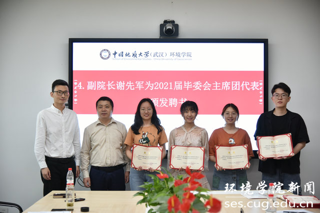 学院党委书记李素矿与学生代表张心阳展示2021届环境学院毕业生“全家福”